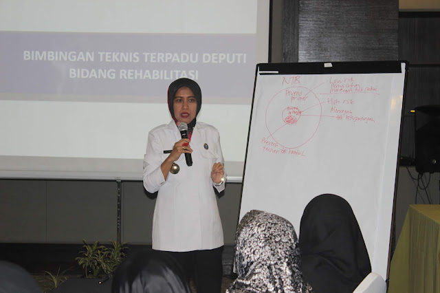 Mataram - Deputi Bidang Rehabilitasi BNN RI melakukan kunjungan kerja ke Provinsi NTB dalam rangka Bimbingan Teknis (Bimtek) kepada seluruh pelaksana fungsi Rehabilitasi BNNP NTB dan jajarannya yang dihadiri oleh seluruh Kasi Rehabilitasi BNNK dan Kabid Rehabilitasi BNNP NTB serta turut hadir pula Kepala BNNP NTB Drs. Imam Margono.