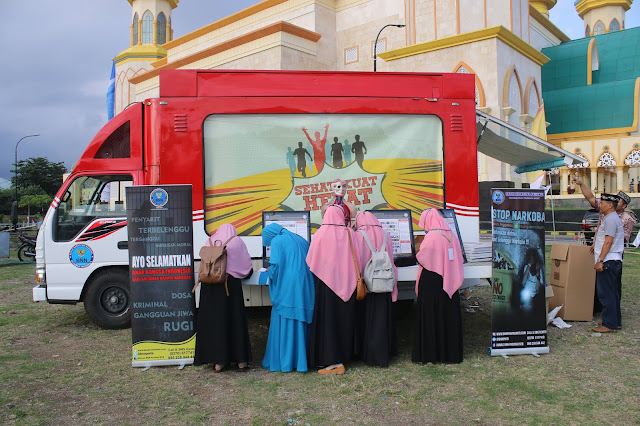 Kali ini BNNP NTB hadir menggunakan mobil Sosialisasi dan Kampanye pada Panggung Utama dengan menampilkan berbagai perangkat sosialisasi sebagai salah satu sarana bagi masyarakat untuk berkonsultasi dan menyampaikan informasi tentang P4GN.